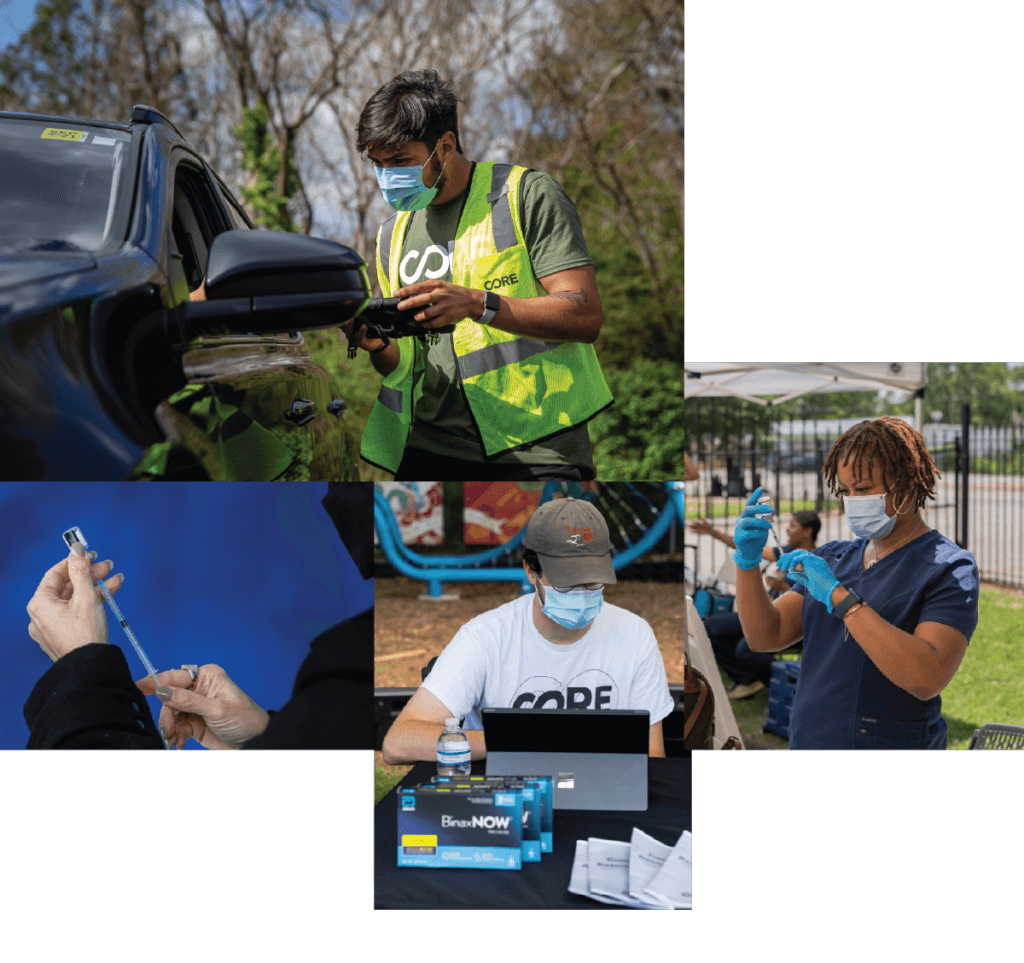 CORE Georgia was established in April 2020, following the launch of a statewide COVID-19 response program. Alongside our partners, we operated a free mass COVID-19 testing site at Mercedes-Benz Stadium, an innovative mobile testing unit operation bringing services directly to communities, Case Investigation and Resource Coordination program, and a statewide mobile vaccination program.