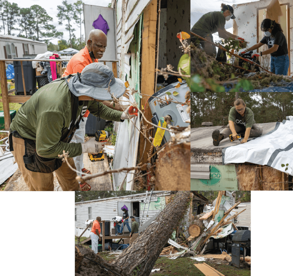 In Valdosta, Georgia, CORE also tarped severely damaged mobile homes and conducted wellness checks to support community members, many of whom are elderly, low income and without insurance, and managing chronic illnesses. Some had been dealing with residual mold and interior damage from the three back-to-back storms that previously impacted the region.