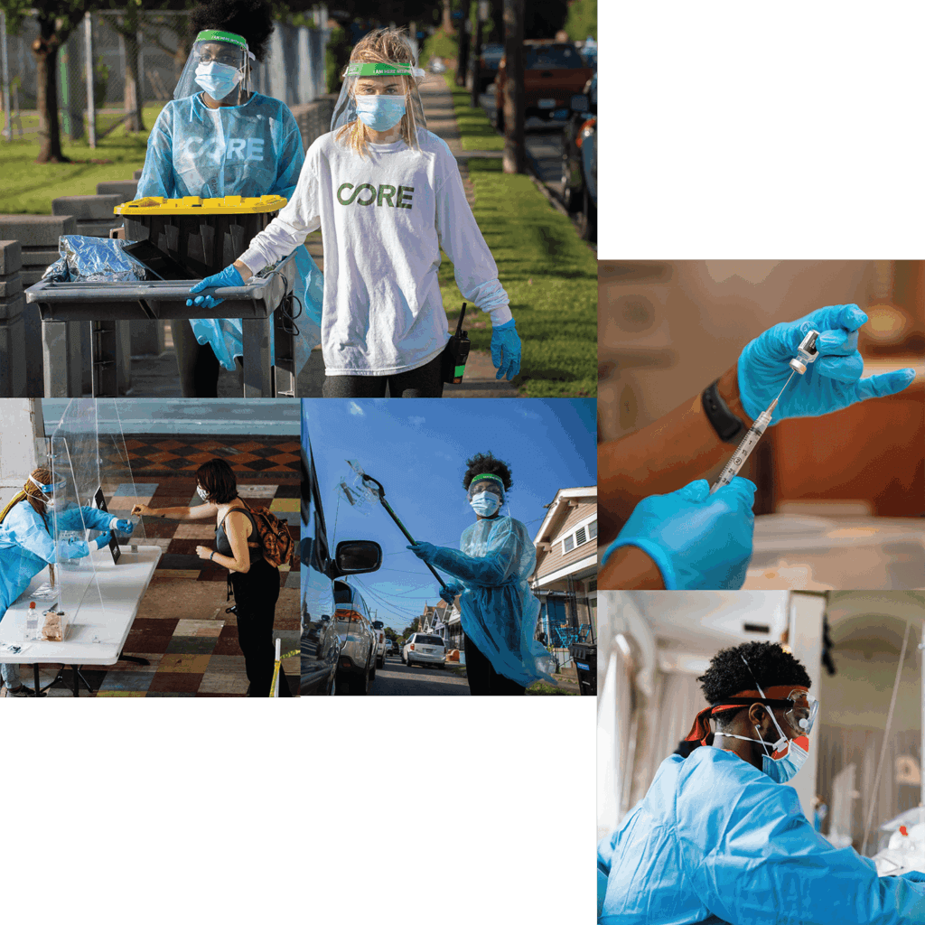 Like many cities across the U.S., COVID-19 devastated many low-income and marginalized communities in New Orleans. Alongside our partners, CORE operated mobile COVID-19 vaccines and testing sites to increase availability to communities most impacted by the pandemic.