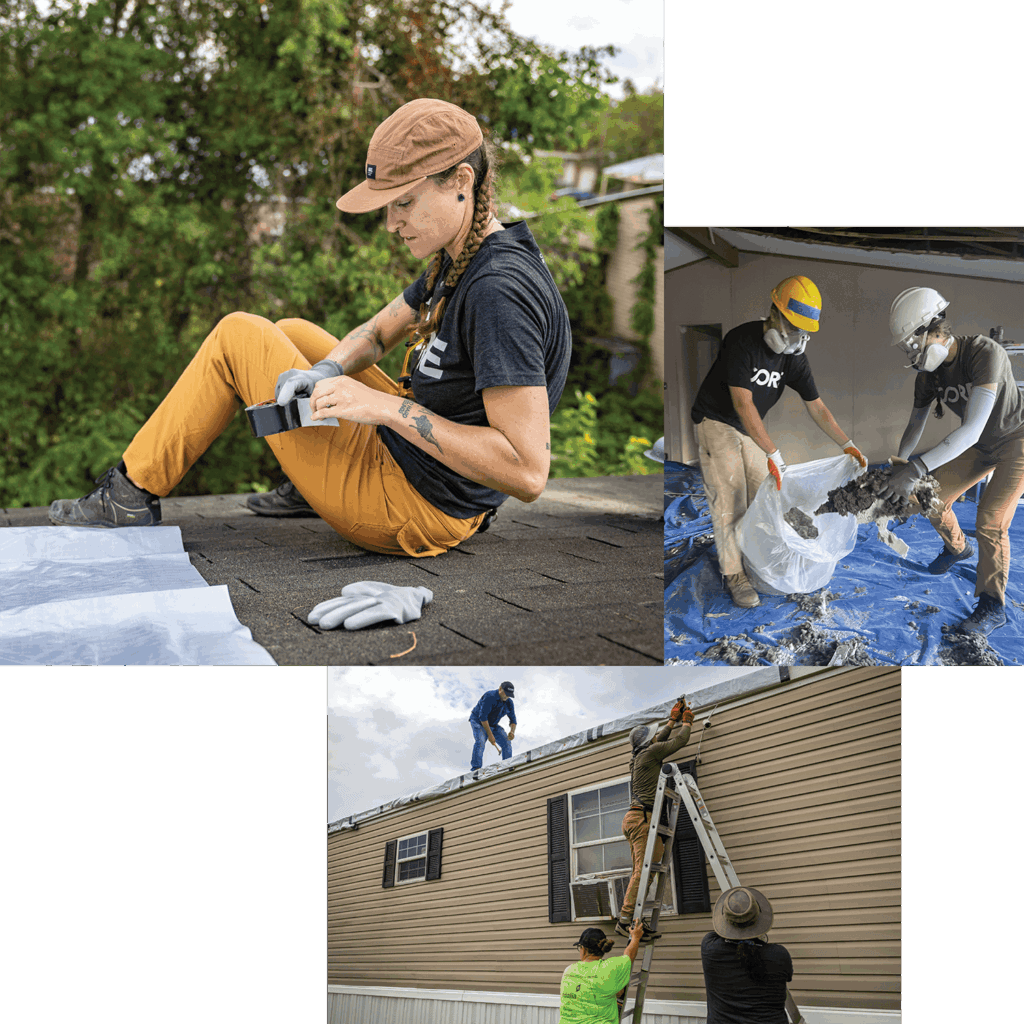 CORE deployed a response team to the affected parishes to support community members with gutting and tarping – a critical first step to help people rebuild. We worked in close partnership with the Louisiana Just Recovery Network, Rural Roots, and SBP to tarp homes and complete critical chainsaw work in Donaldson, LA, which borders Cancer Alley. Our efforts supported underserved community members whose modular homes were particularly vulnerable to disaster and unlikely to receive prompt relief from state or federal agencies.